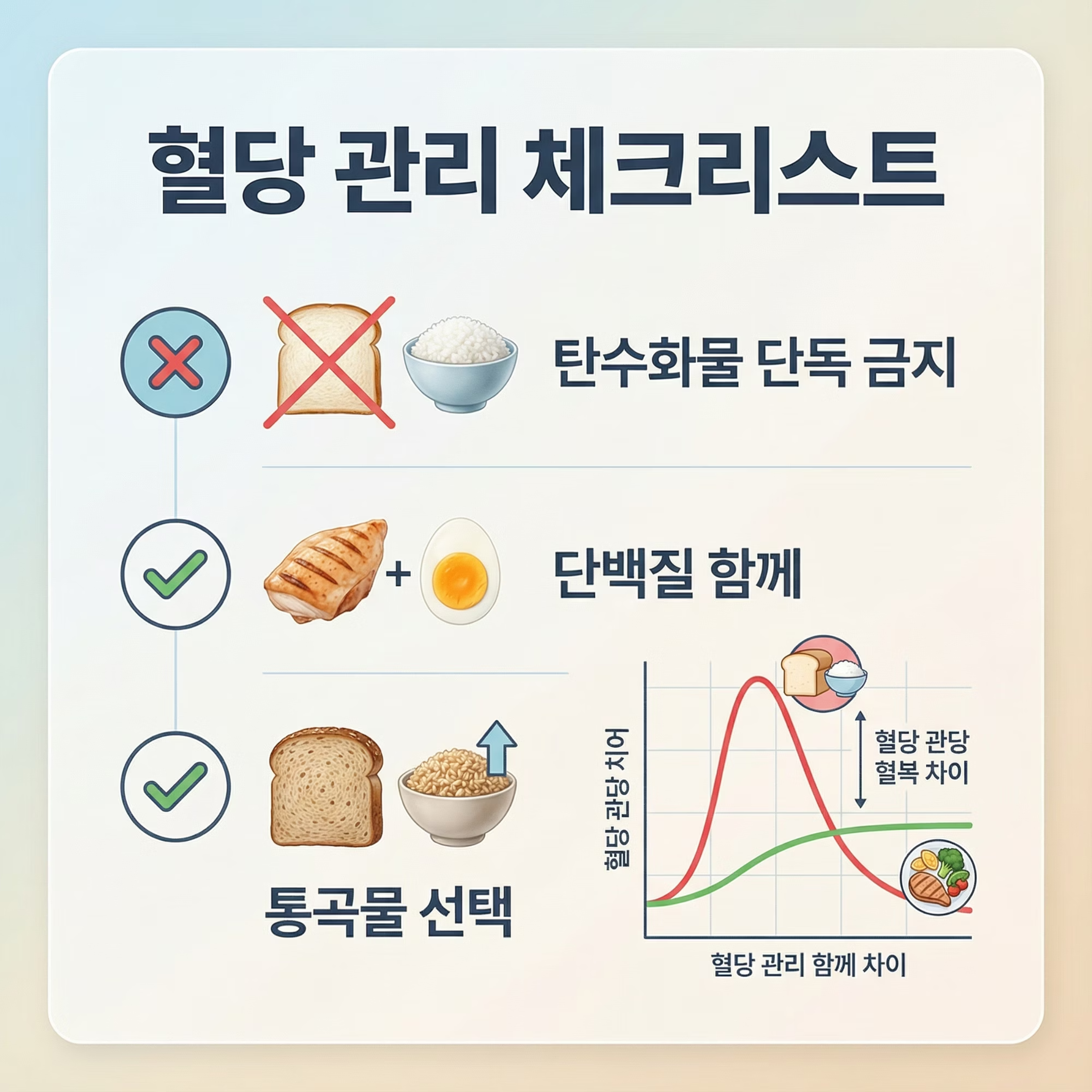 혈당 관리와 소화 건강은 복잡한 식단보다 매일 반복되는 작은 조합 선택에서 차이가 납니다.